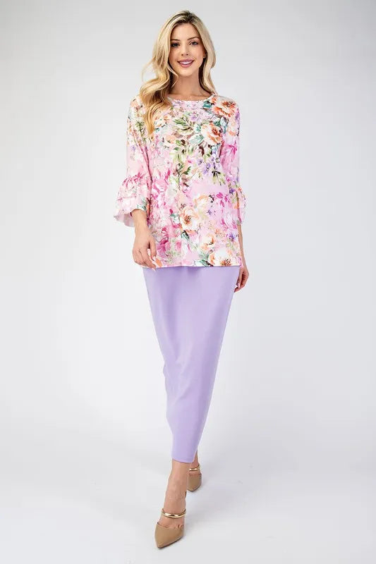 Celeste Full Size Floral Layering Tops with None Slip Sleeves Plus Size