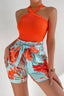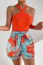 Halter Neck Sleeveless Top and Printed Tie Waist Pants Set