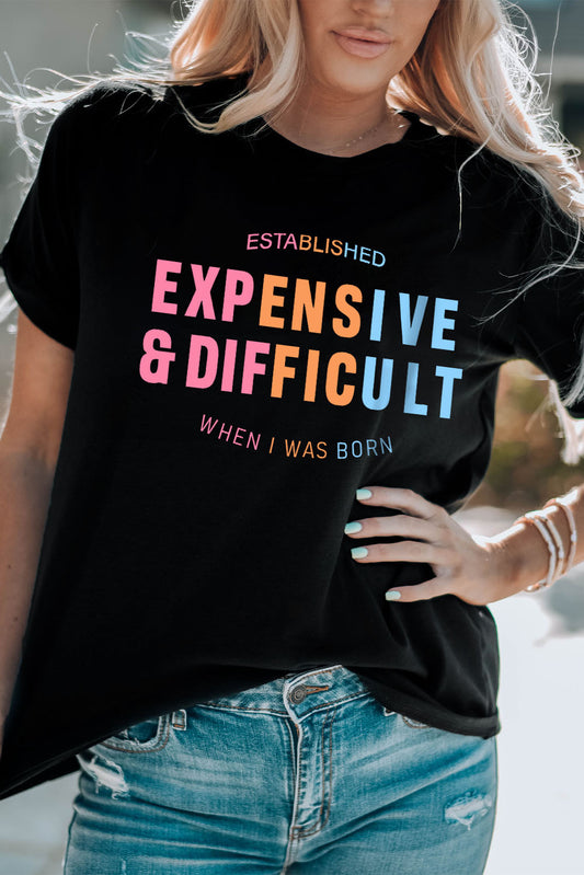 Slogan Graphic Cuffed Sleeve Tee